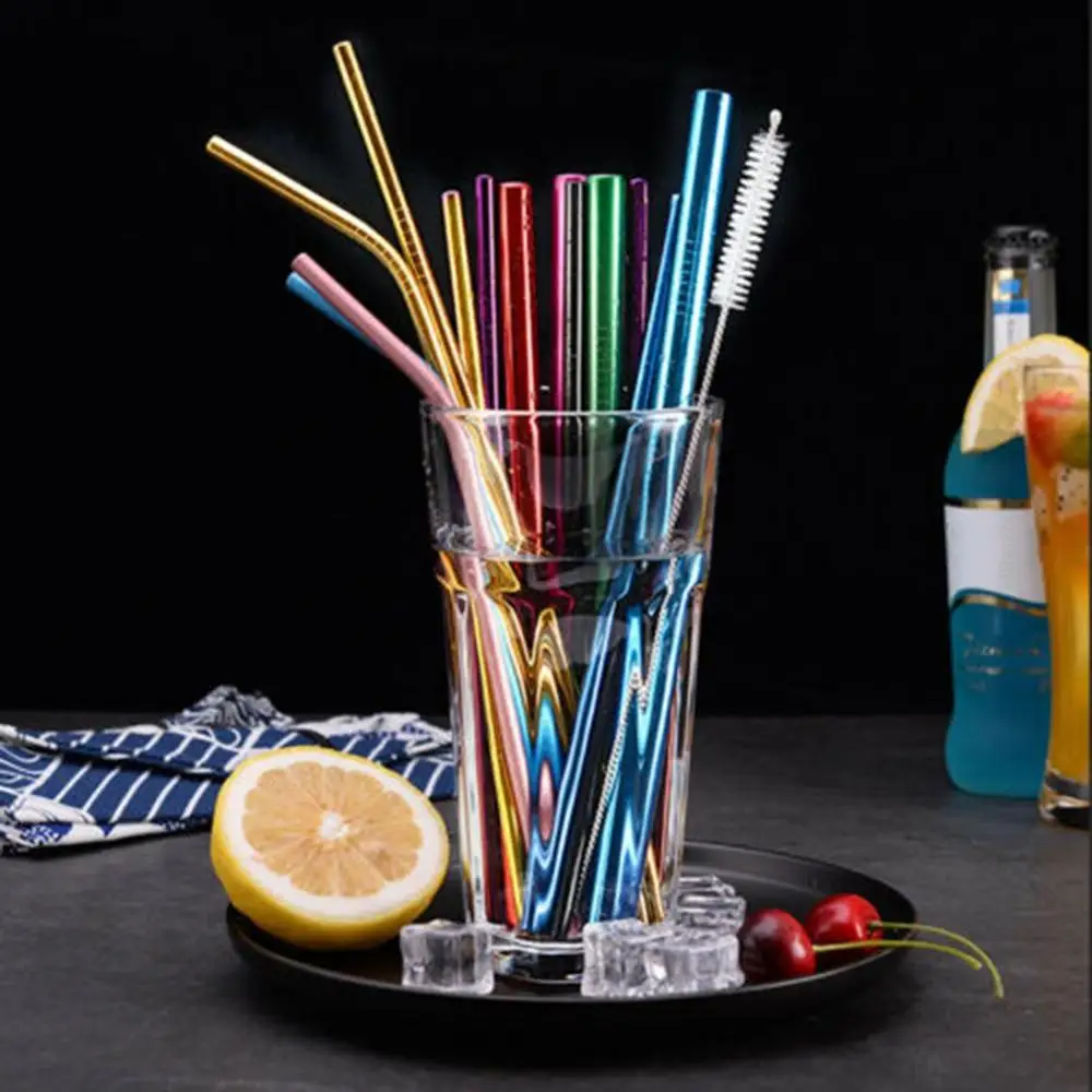 Цветные металлические соломинки с титановым покрытием, соломинки для молока, чая, напитков, соломинки из нержавеющей стали 304, соломинки из нержавеющей стали