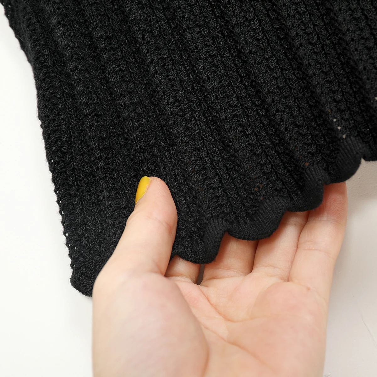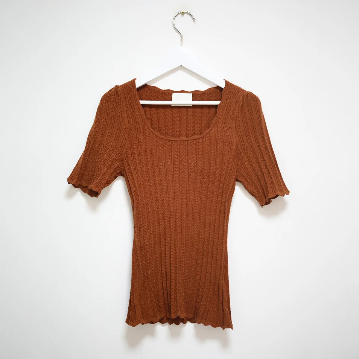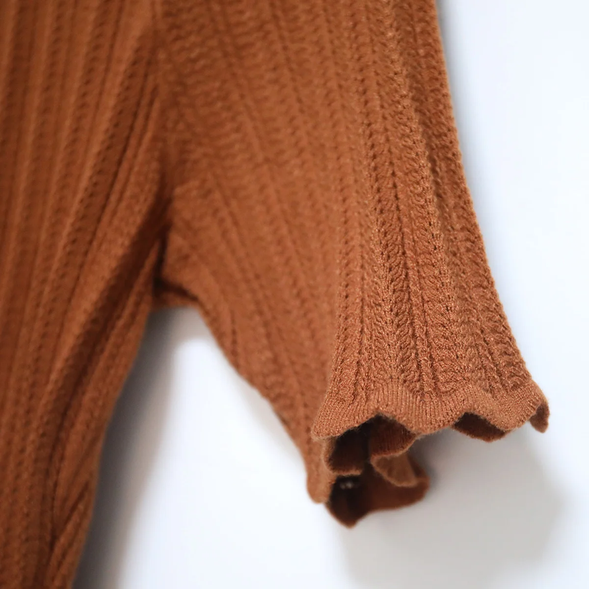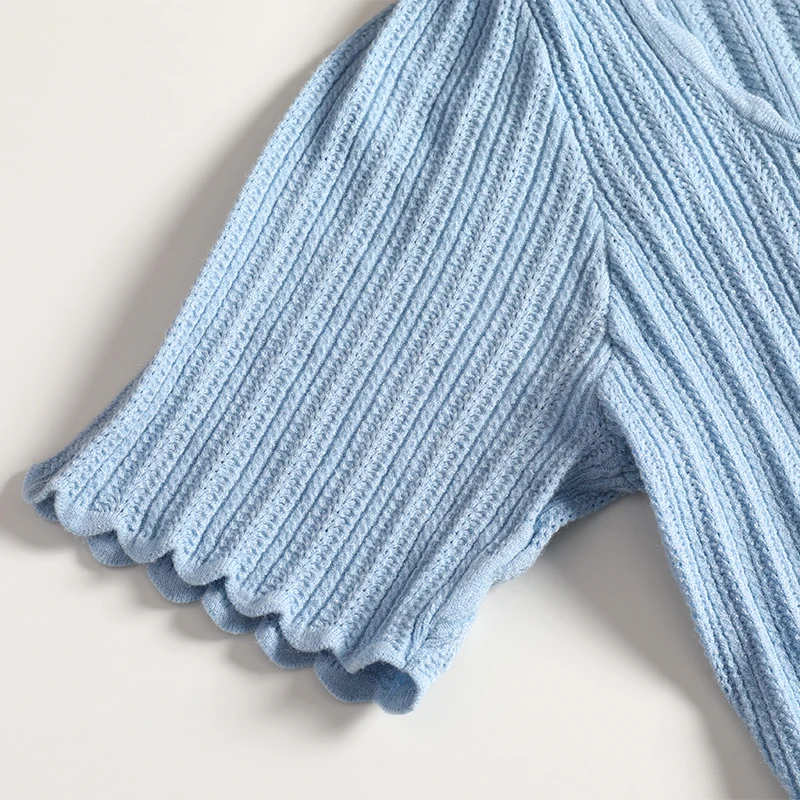 Maille a manches courtesTricotage fantaisie et finitions festonnées