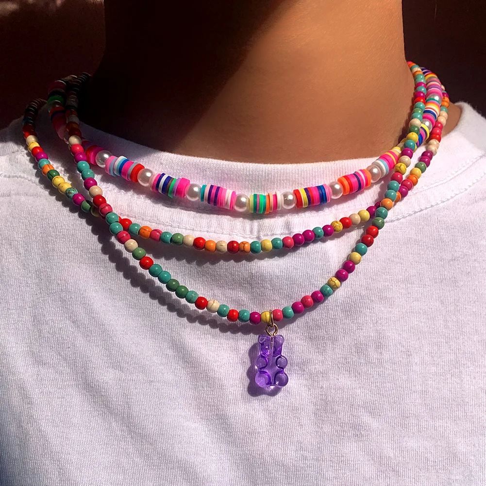 Многослойное ожерелье-чокер с радужным жемчугом и бисером для женщин ожерелье-цепочка с разноцветными бусинами в стиле бохо ожерелье ошейник ювелирные изделия подарки