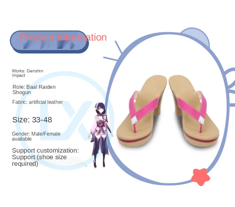 Обувь для косплея в стиле аниме Genshin Impact Raiden Shogun, Baal, на заказ, 33-48 размер, унисекс, сандалии, тапочки толстый каблук