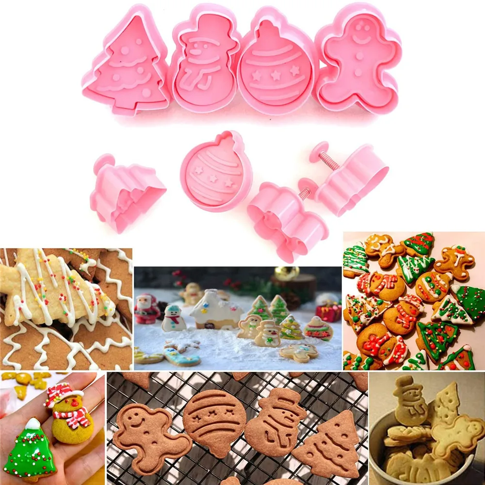 4 шт. штамп для печенья, тиснение, резак для печенья, Рождественская фотоформа, пресс для украшения тортов, инструмент для помадки, пекарни