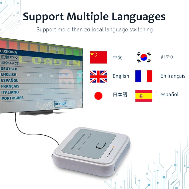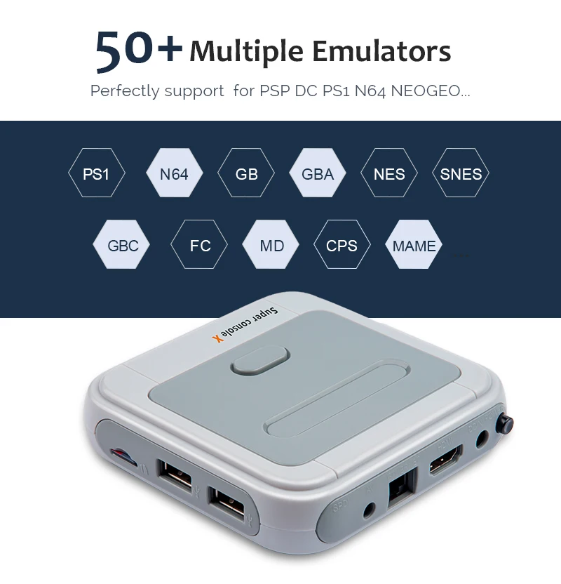 1. Бесплатная карта памяти 64 ГБ 2. Встроенные 50000 ретро-игры для удовлетворения ваших потребностей 3. Предустановленные 50 + эмуляторы, идеальная поддержка PS1/DC/N64/MAME... 4. Многоязычная система, поддержка 20 + языков 5. Поддержка 4K HD выход, разрешение 720/1080P 6. Поддержка WIFI/LAN подключения, возможность загрузки игр 7. Использование чипа S905M 8. Поддержка 33289 игр, 128G TF карта поддержка s 41485 games.256G TF карта поддержка s 50000 + игр.