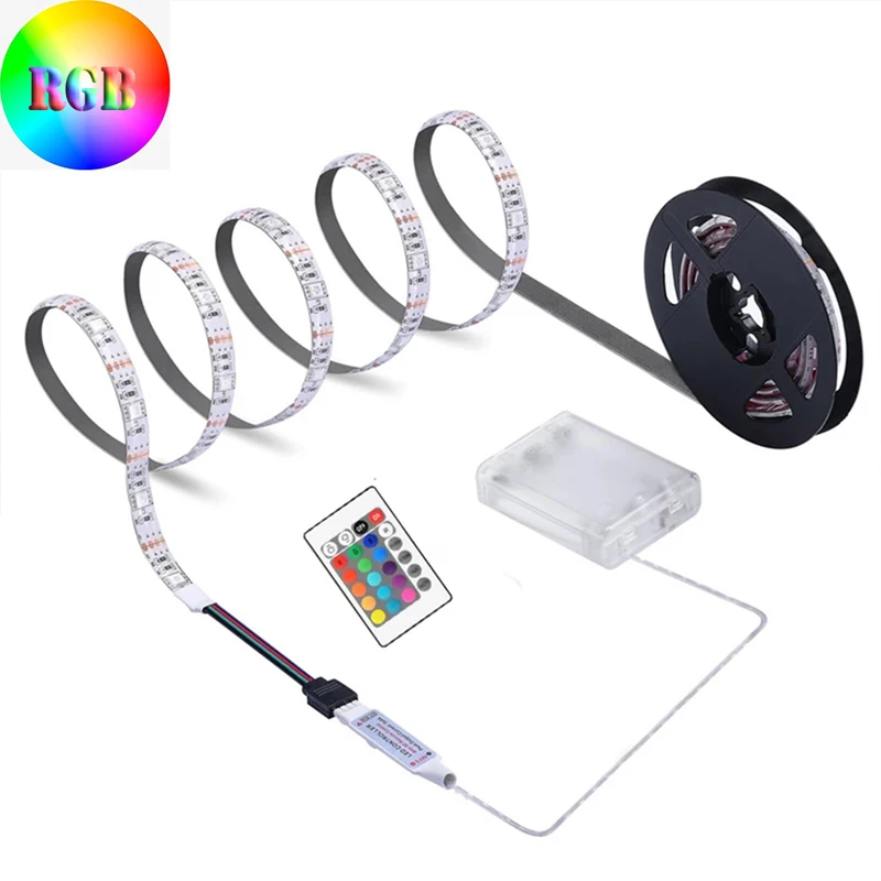 Светодиодная лента с питанием от батарейки AA, ИК-пульт дистанционного управления, 5 В, 5050, водонепроницаемая гибкая лента RGB для фона телевизора, подсветсветильник, декоративная светодиодная настенная лампа для спальни