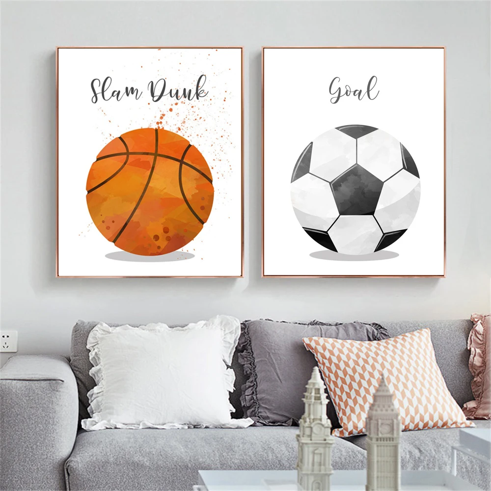Спортивная картина с различными мячиками, печать на холсте, настенные художественные плакаты, Декоративные плакаты для футбола, баскетбола, регби для гостиной, домашний декор