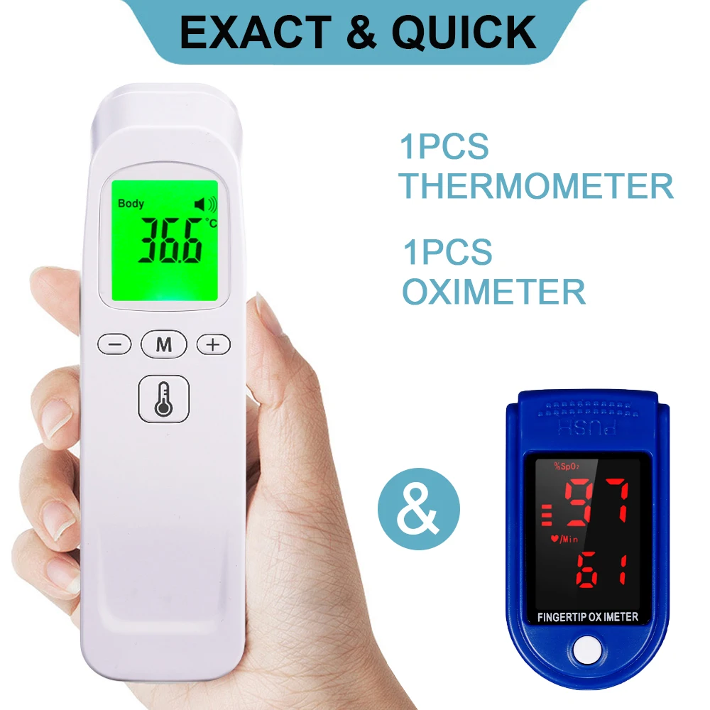 Пульсоксиметр SPO2 PR, бесконтактный прибор для измерения температуры крови и уровня кислорода в крови, с аккумулятором