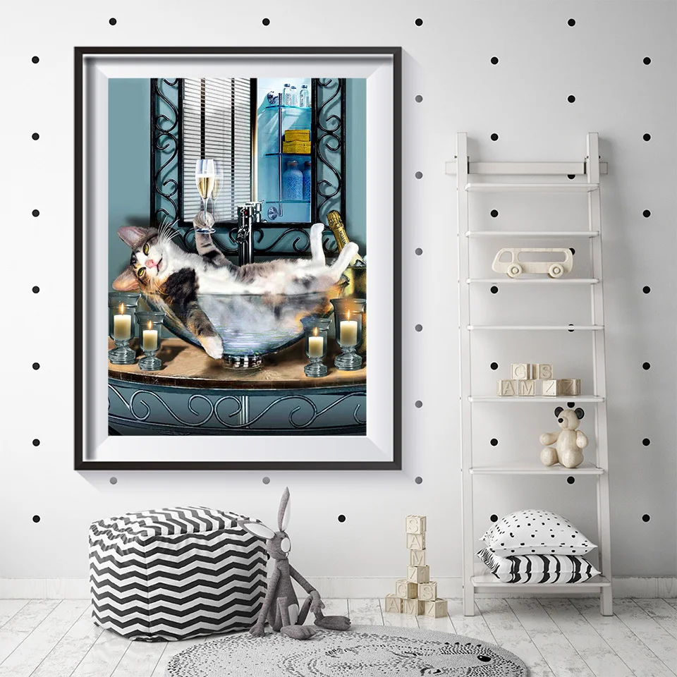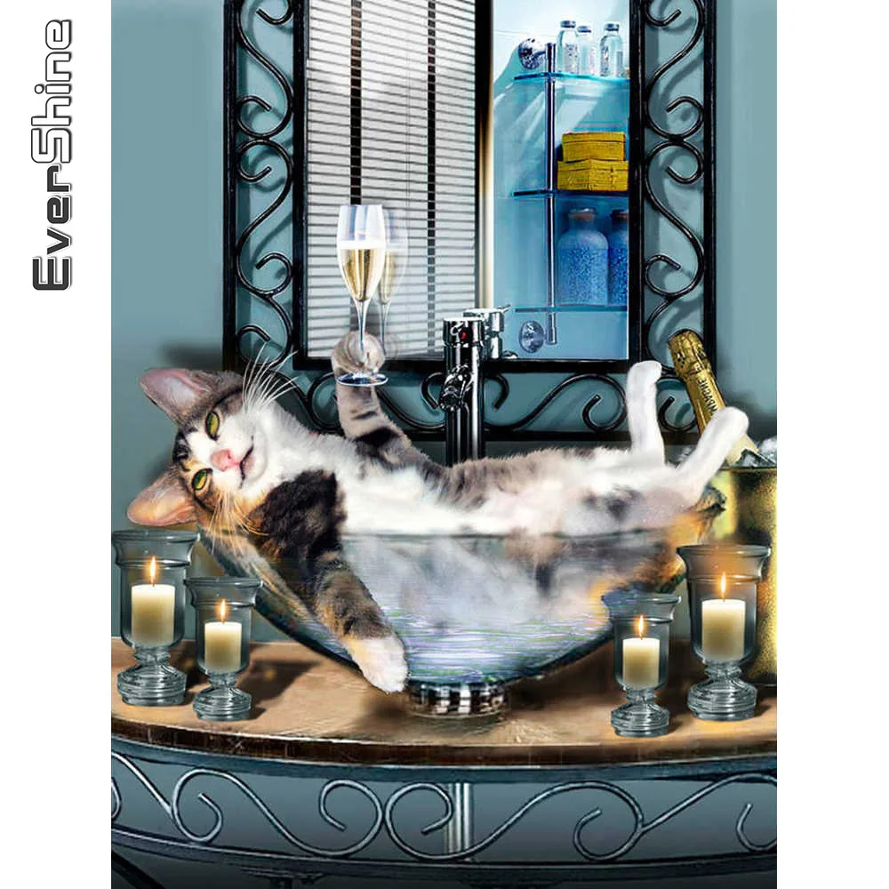Evershine алмазная живопись кот животное полная квадратная круглая Алмазная вышивка ванная комната крест фотография хобби ручной работы