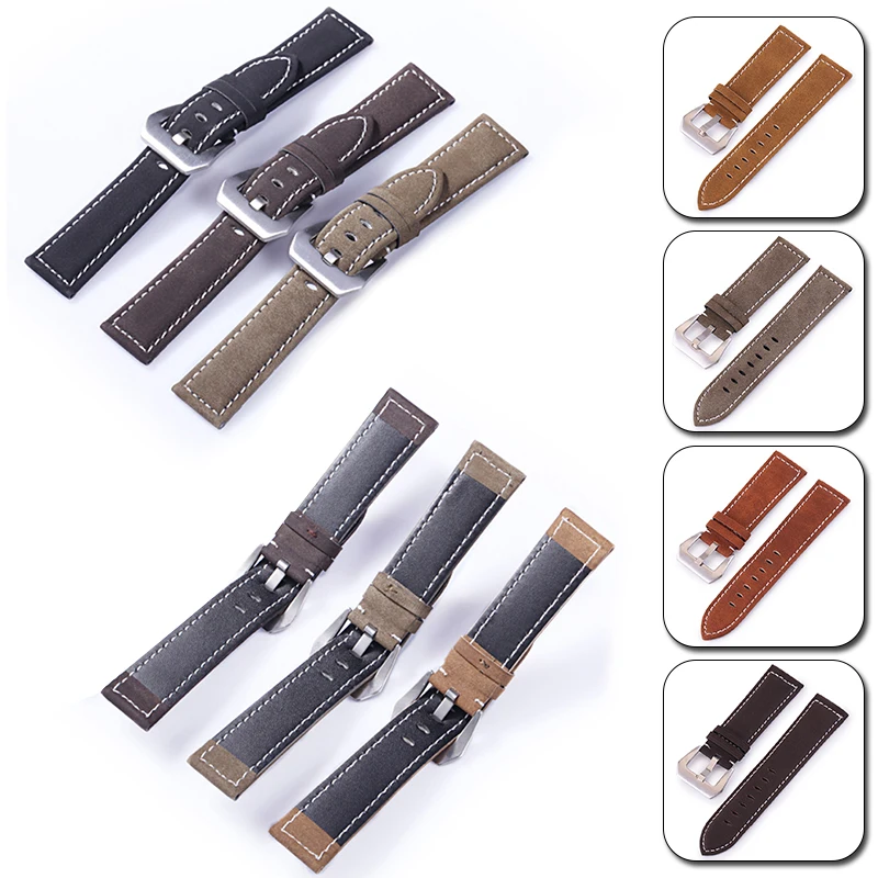 Новый стиль, винтажный кожаный ремешок для часов, 18 мм, 20 мм, 22 мм, 24 мм, матовый толстый ремешок ручной работы, аксессуары для часов, ремешок, оптовая продажа