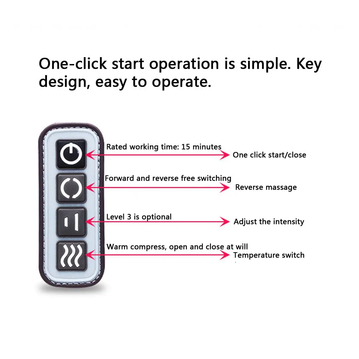 Особенности:-Автоматическое и простое управление одной кнопкой.-Многофункциональный массажер для ног, можно массировать как ногу, так и теленок.-Встроенное устройство защиты от перегрева. 15 минут защиты от нагрева.-3 уровня регулировки прочности для удовлетворения различных потребностей.-Отлично подходит для боли в ногах, диабетической невропатии, отека, улучшения кровообращения или просто расслабляющего массажа ног.-Идеально подходит для домашнего использования. Подходит для людей с плохим сном, людей с высоким давлением на работе, пожилых людей и т. д.