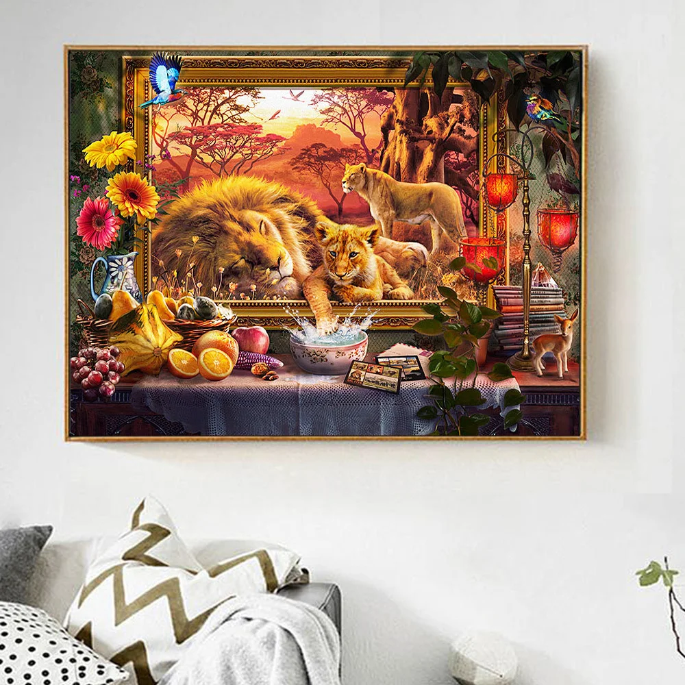 Набор для алмазной вышивки с животными, картина для стразы, ручная работа, 5D, алмазная картина льва