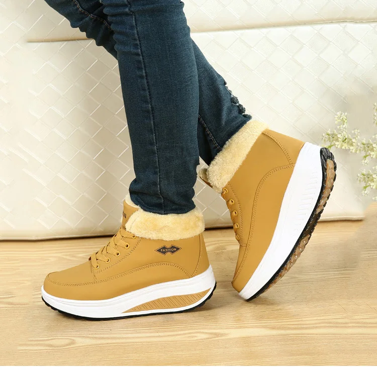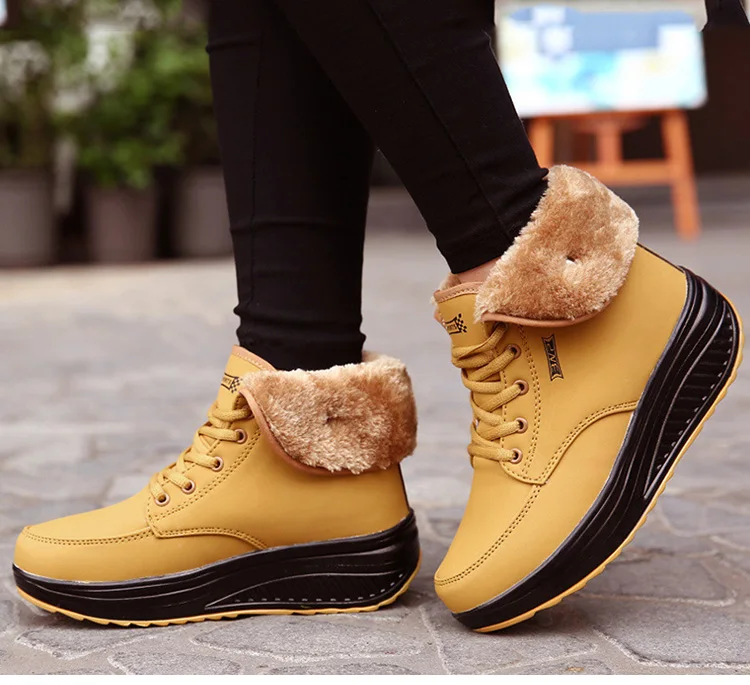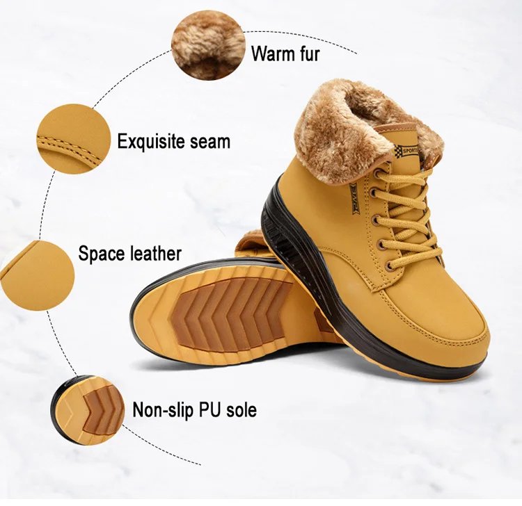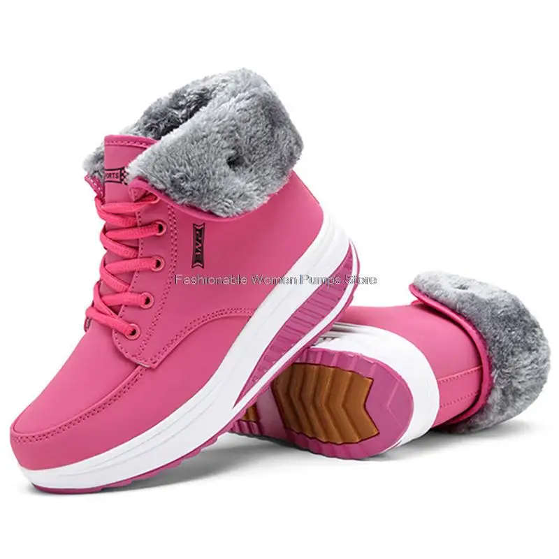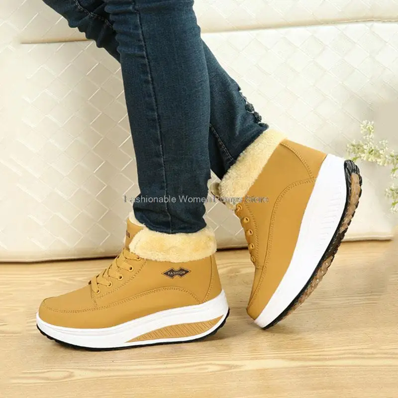 Новинка, женские ботинки, кроссовки на массивной платформе, теплая плюшевая женская зимняя обувь на шнуровке, ботильоны, женские бархатные ботинки для снежной погоды