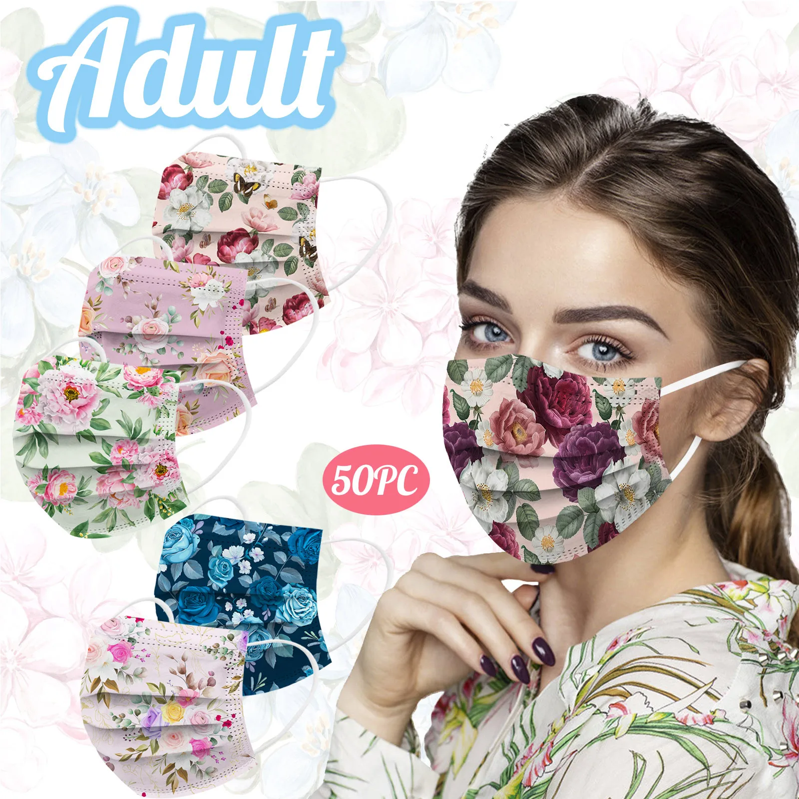 50 шт одноразовые нейтральные маска с цветочным узором одноразовые Мягкая тонкая маска для взрослых 3-Слои маска