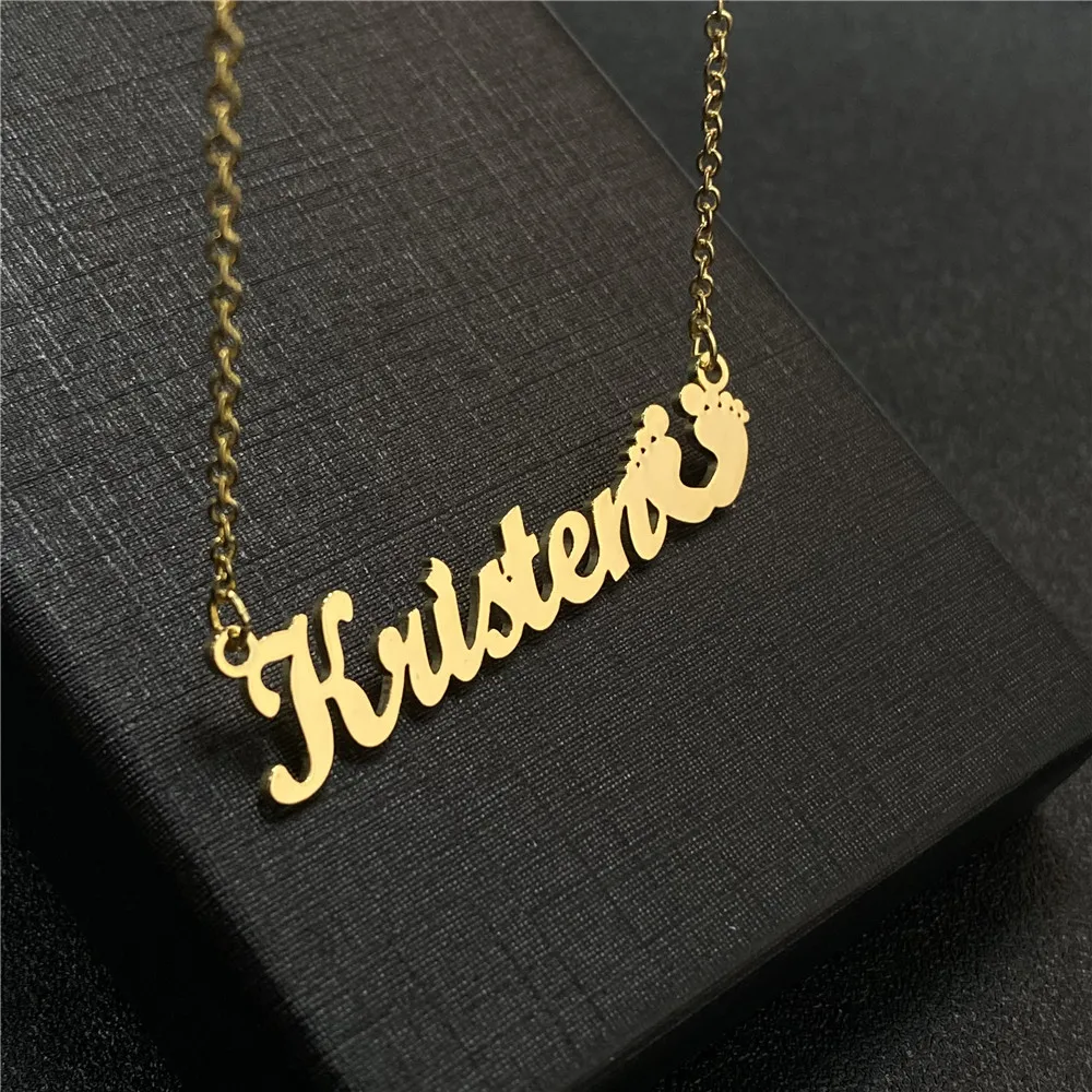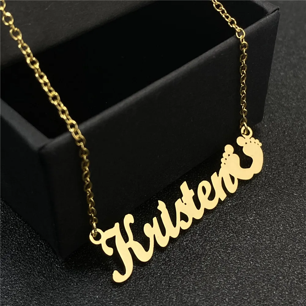 Ожерелье с именем на заказ из нержавеющей стали от KristenCo, персонализированное ожерелье с подвеской в виде буквы с маленькими ножками для маленьких мальчиков и девочек