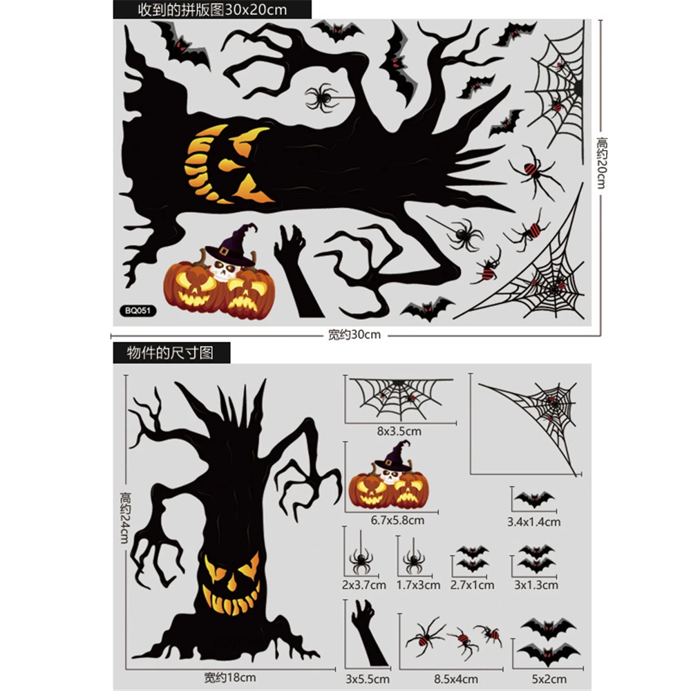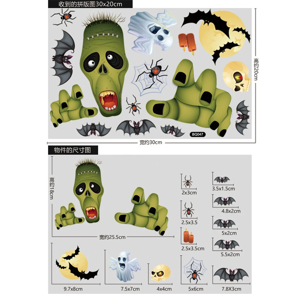 Украшение на Хэллоуин, наклейка на стену, стеклянная дверь, милый череп, скелет, пугало, паук, призрак, наклейки, Хэллоуин вечерние вечеринка, декор сделай сам