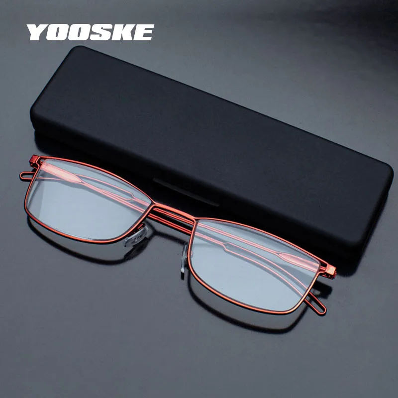 Ультратонкие очки для чтения YOOSKE с защитой от сисветильник света, Мужские квадратные очки с HD-линзами, женские и мужские ультралегкие высококачественные очки с чехлом