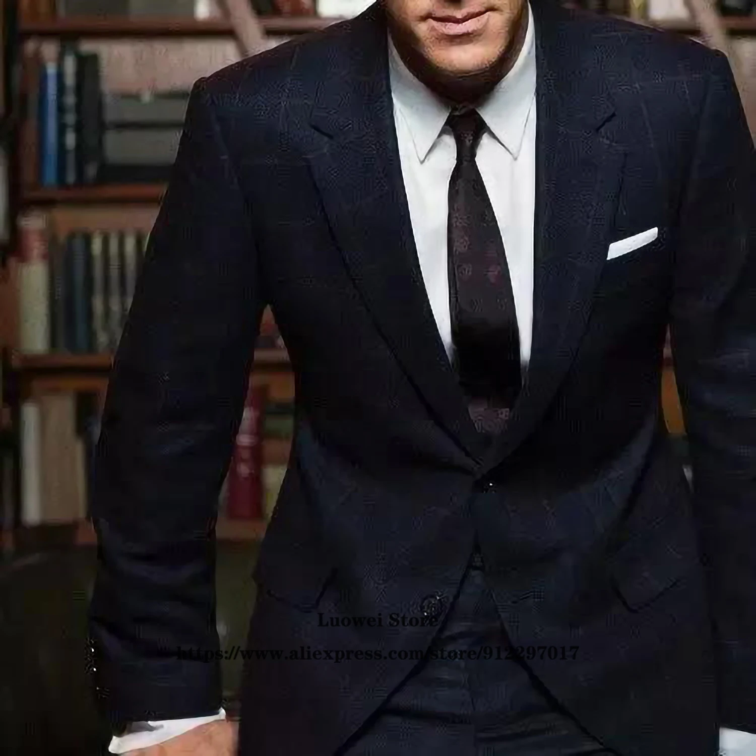 Классический темно-синий клетчатый мужской костюм, винтажный мужской деловой Блейзер, свадебный смокинг для жениха, комплект из 2 предметов, Terno Masculino (пиджак + брюки)
