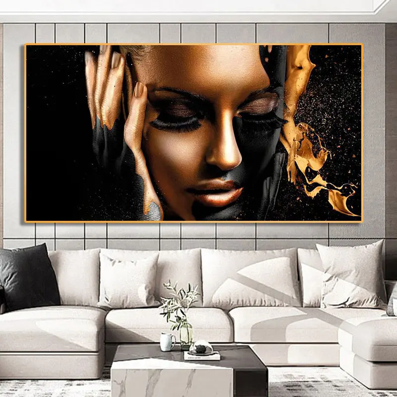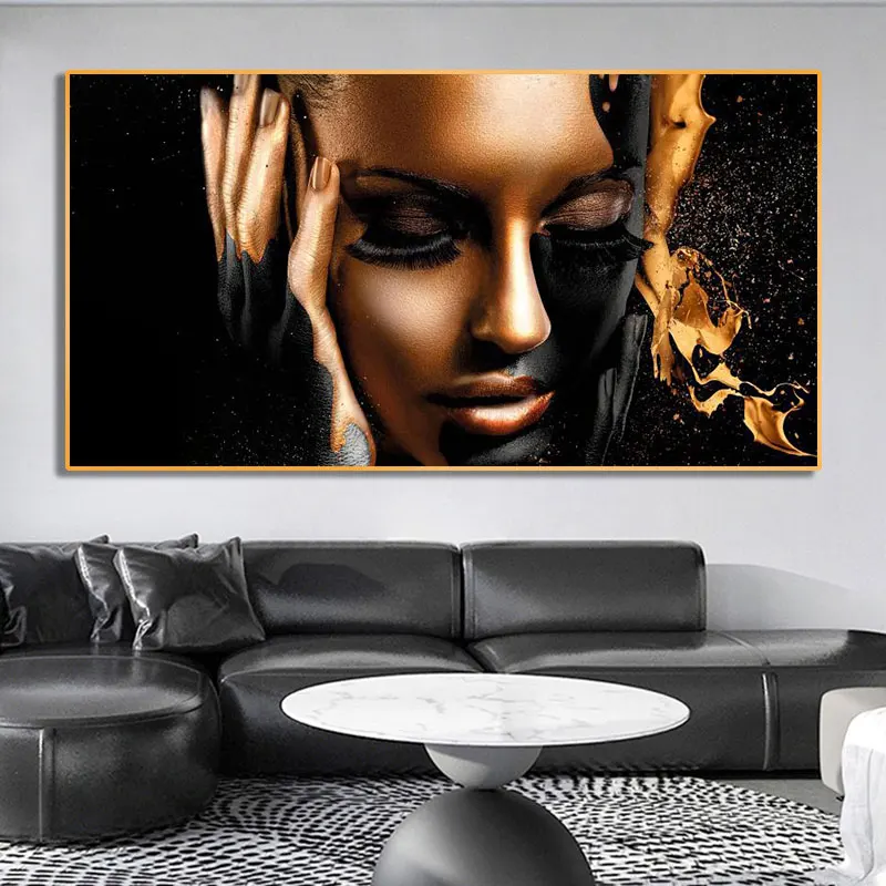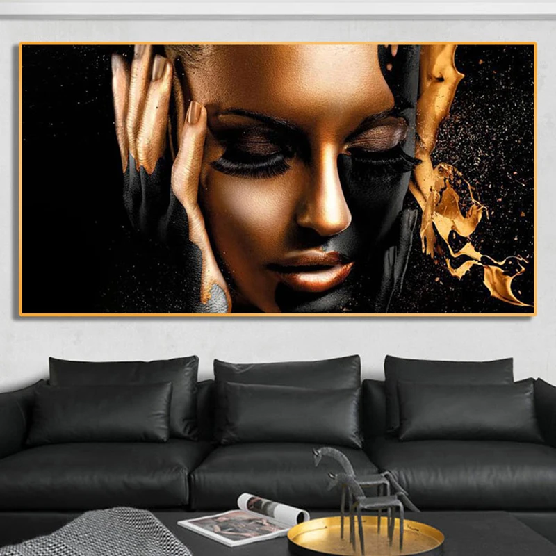 Современная Золотая африканская Женская Настенная картина на холсте настенные постеры и фотообои для гостиной домашний декор