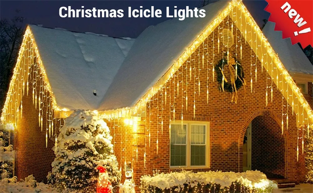 Рождественская гирлянда, светодиодная гирлянда-занавеска в виде сосулек, 5-20 м, домик Водопад на новый год, Хэллоуин, украшение для сада, патио, 8 режимов