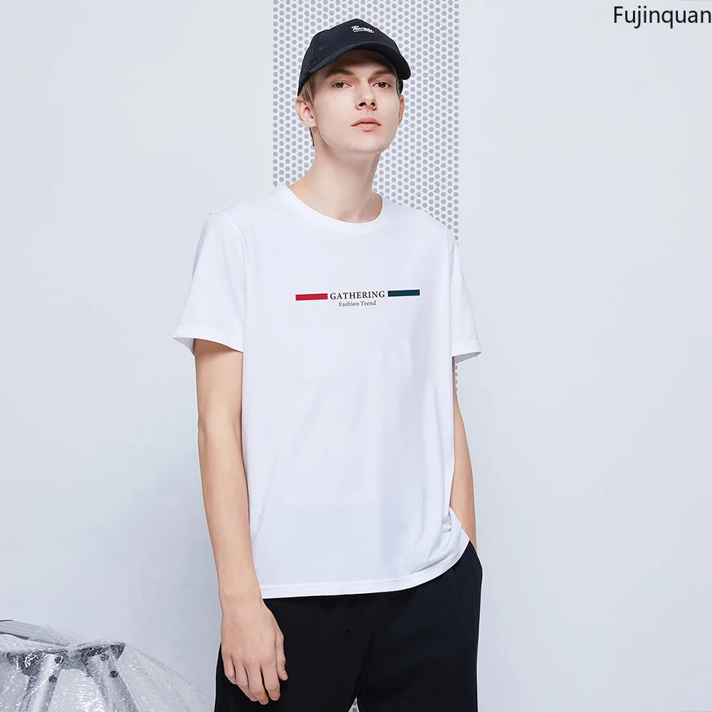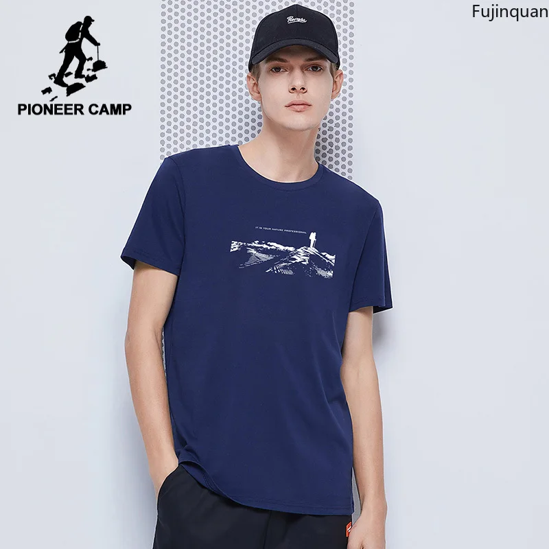 Мужская хлопковая футболка с коротким рукавом, круглым вырезом и принтом