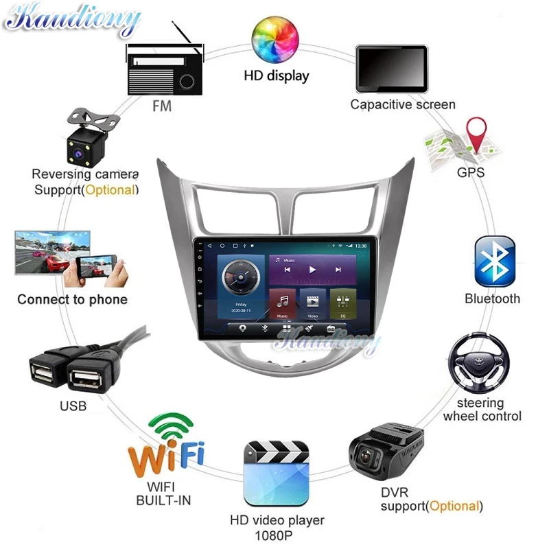 Подходит дляHyundai Solaris 1 Accent i25 2010 2011 2012 2013 20142015 2016Встроенная функция Wi-Fi (подключение к горячей точке с вашего смартфона для Интернета)