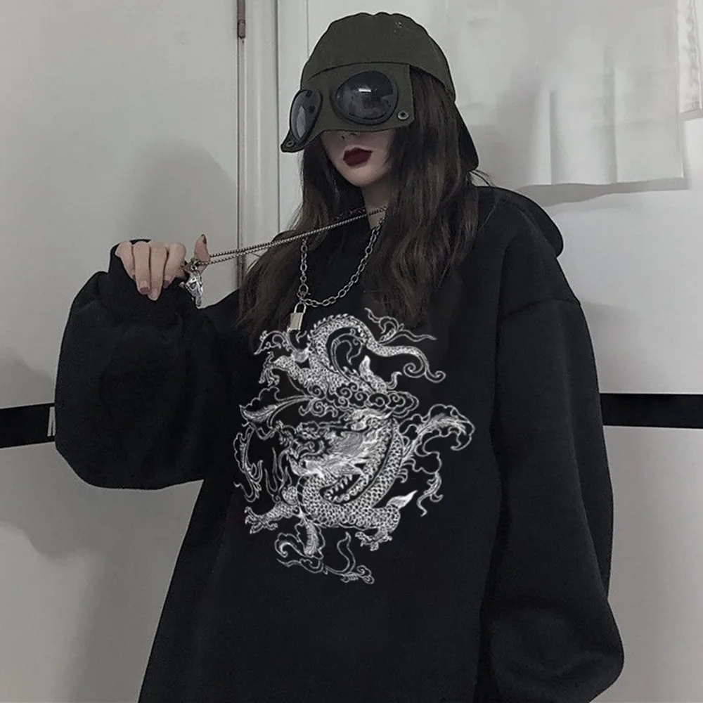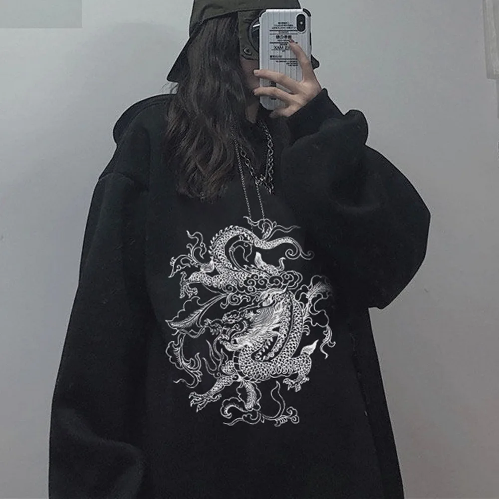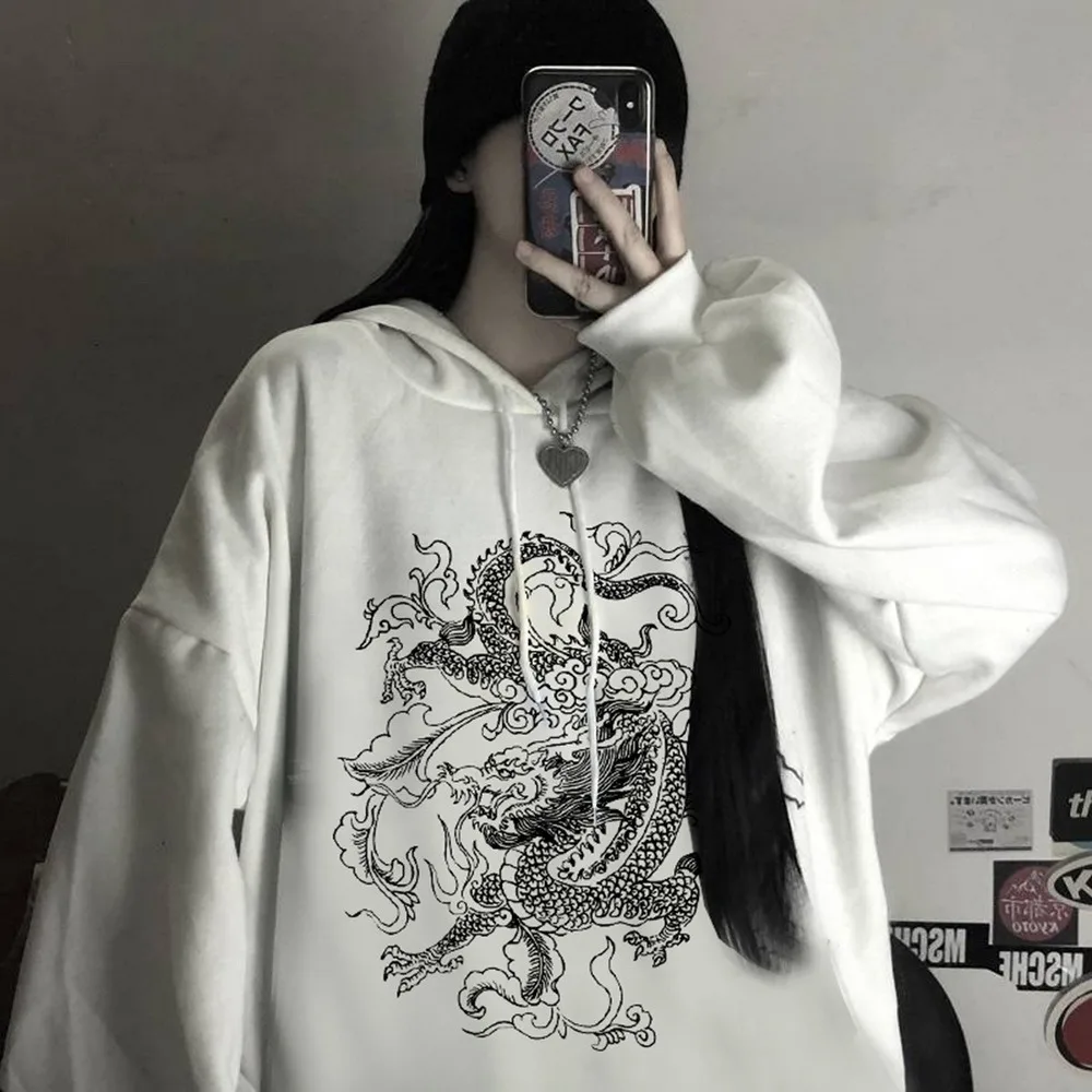 Женский свитшот с капюшоном и принтом дракона в китайском стиле Харадзюку, повседневная спортивная одежда для пар, уличная одежда унисекс в стиле хип-хоп