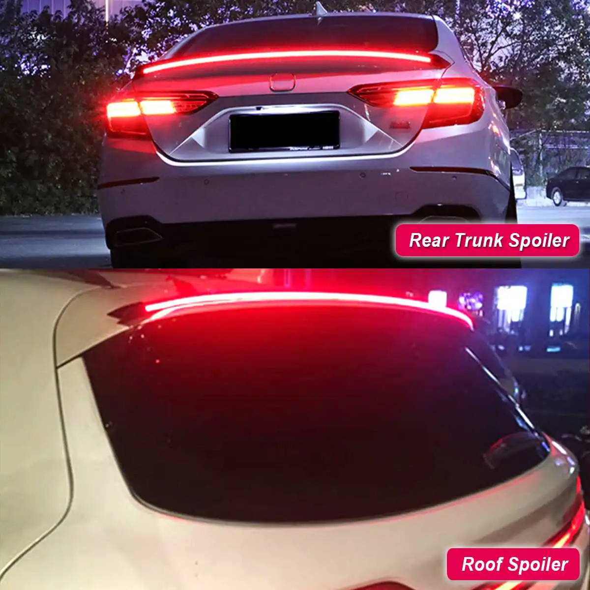 Светодиодный спойлер для багажника автомобиля, универсальный задний спойлер【 No-drill】нет необходимости пробивать отверстия в багажнике, прямая установка, простая проводка. Интеллектуальный декодер может быть непосредственно подключен и использован, и операция является более стабильной.【Высококачественный светодиодный 】 светодиодный светильник высокой яркости, высокая яркость, низкий светильник, долговечность и водонепроницаемость.【Режим мульти-светильник 】 светодиодный светильник s может использоваться как сигнальный Светильник Автомобиля s, делает вас более безопасным во время вождения в дождливые, туманные дни и ночью, но также улучшает эстетику автомобильного хвоста.