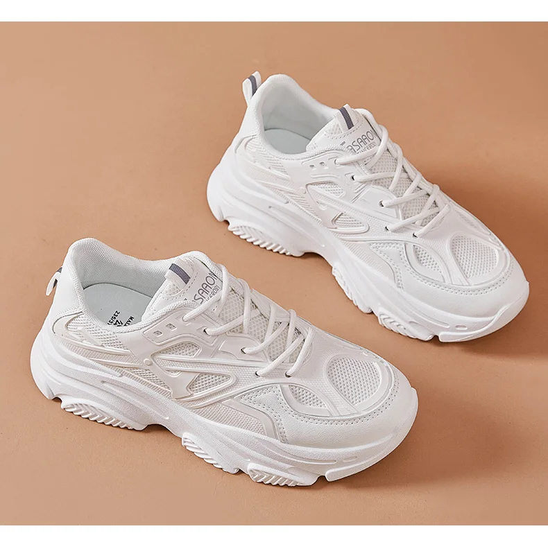 Белые кроссовки на платформе; Женская повседневная обувь; Дышащая с...