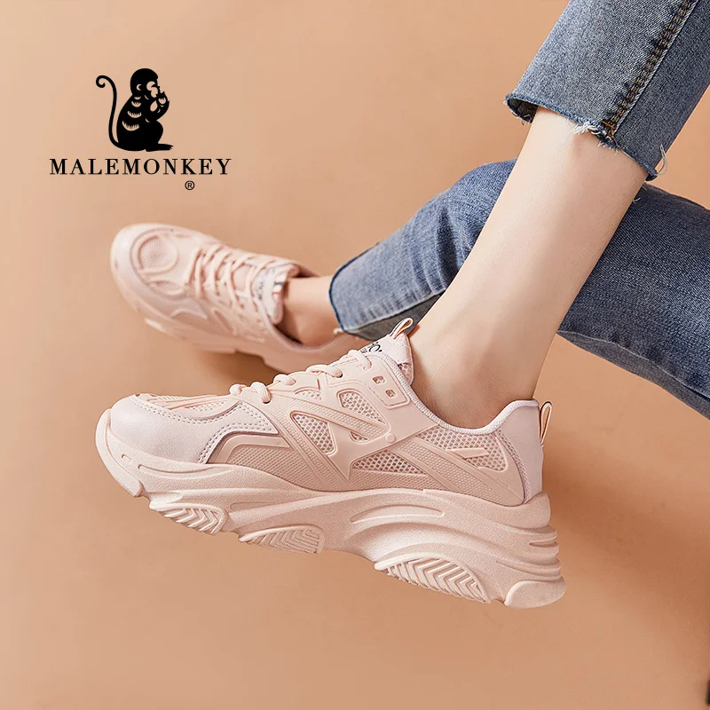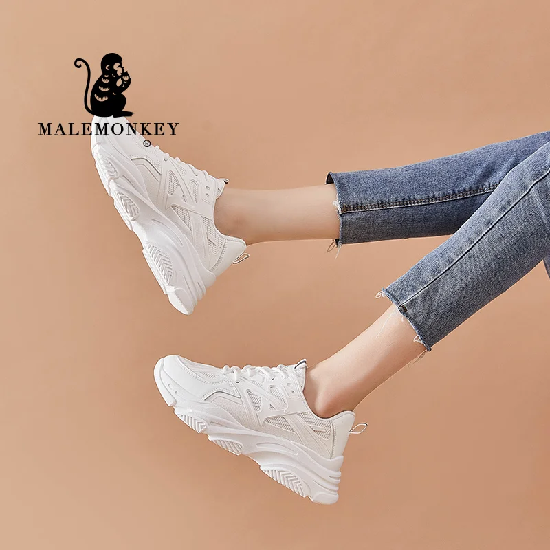 Брендовая женская обувь; Белые кроссовки на платформе; Коллекция 2021 года; Сезон осень; Повседневная дышащая удобная спортивная обувь для бега; Модная нескользящая обувь на шнуровке