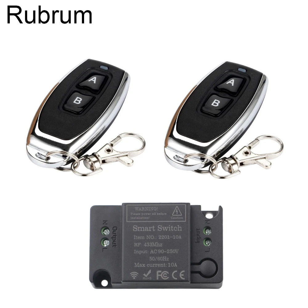 Универсальный беспроводной Радиочастотный пульт дистанционного управления Rubrum 433 МГц, выключатель света для лампы вентилятора, 10 А, релейный радиоприемник переменного тока 220 В, 1-канальный модуль приемника, передатчик