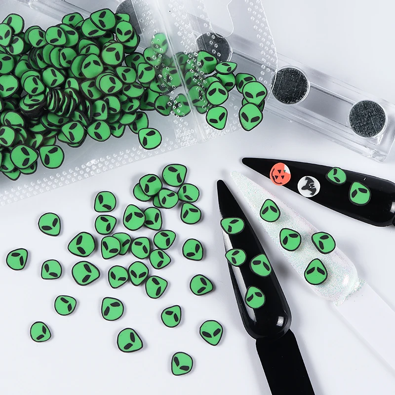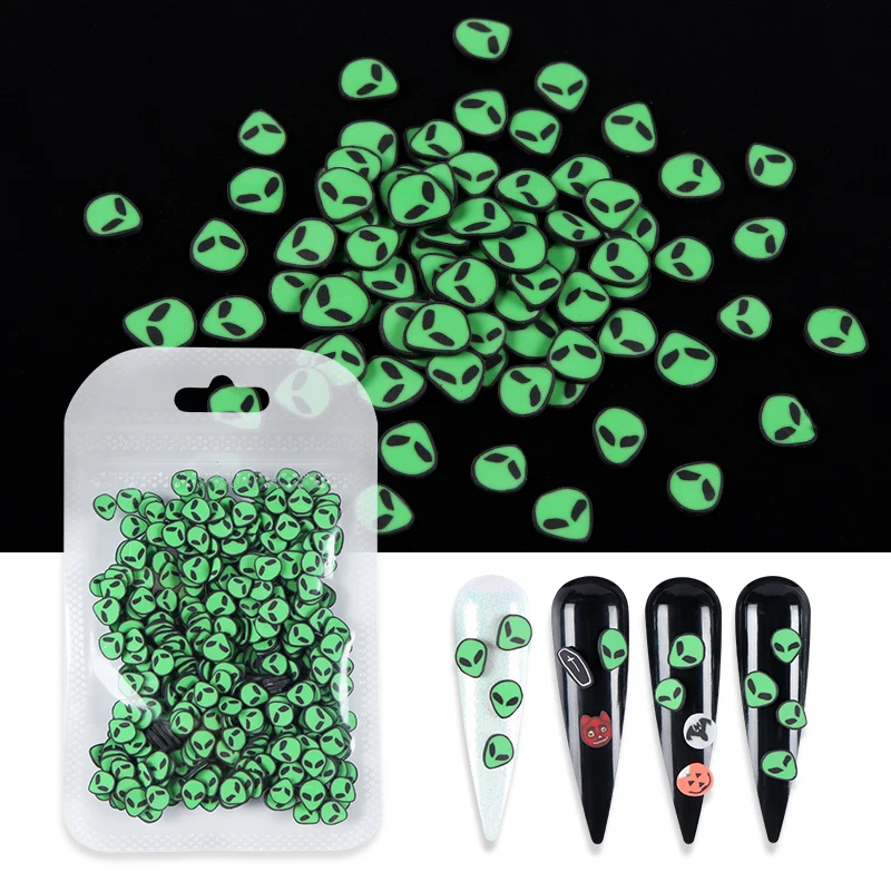 10 г, искусственные ногти на Хэллоуин, зеленые блестящие хлопья инопланетянина, 3D-дизайн, украшения для ногтей, аксессуары, материалы для маникюра