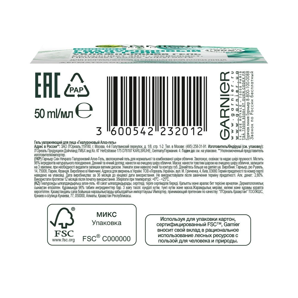 Гиалуроновый увлажняющий алоэ гель для лица Garnier Skin Naturals для нормальной и смешанной кожи 50мл