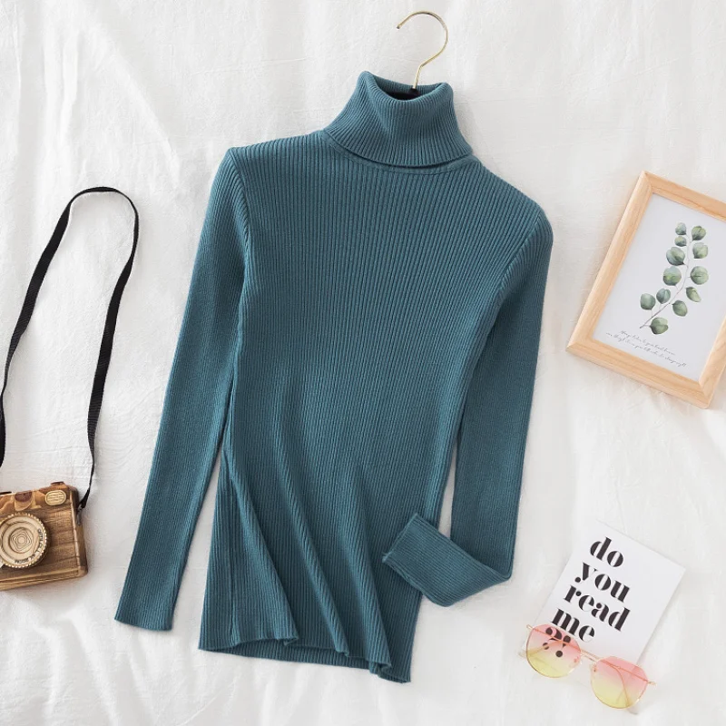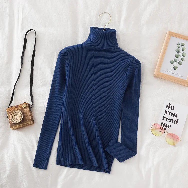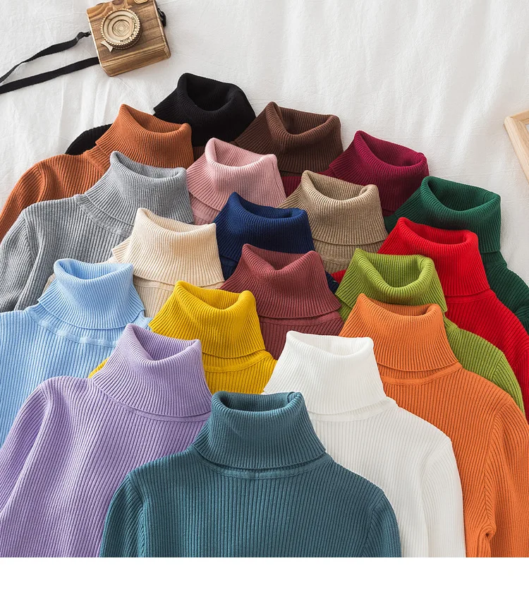 Свитер с высоким воротником, Женский пуловер на весну и осень, модный вязаный базовый свитер с длинным рукавом в Корейском стиле, топы, женская трикотажная кофта, 2021