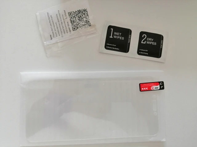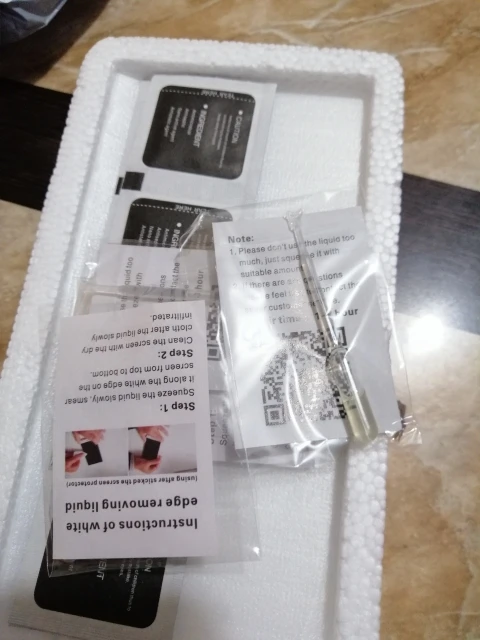 Заказ прибыл за месяц с небольшим. Товар соответствует параметрам. Хорошая компактная упаковка. В наборе три защитных стекла, на каждое стекло по две салфетки и по одному тюбику жидкости для протирки экрана