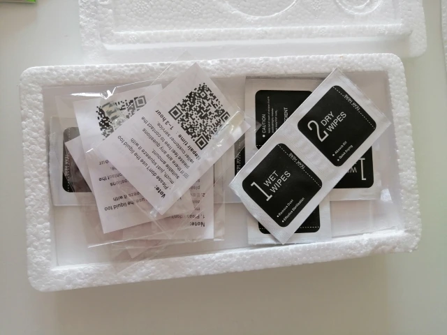 Прибыл хорошо упакованный, поставляется с чистящими салфетками