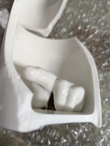 Выглядит как на картинке, но не показывает отверстие в основании руки. Он прибыл сломанным, потому что он был отправлен в один слой обычной пузырчатой пленки, но отверстие выглядит так, как будто оно должно было быть там. Удачи в уборке внутри. Ужасный дизайн, если вы планируете его использовать. За это он потерял одну звезду. Было бы неплохо знать, что он не работает.