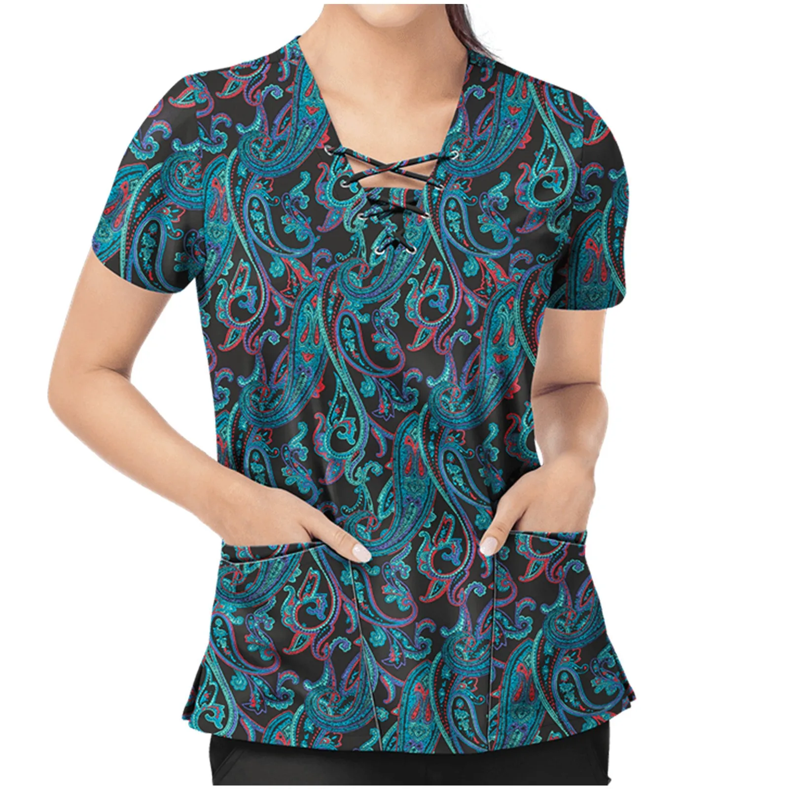 Женские топы с коротким рукавом и v-образным вырезом с цветочным принтом, рабочие футболки для медсестер