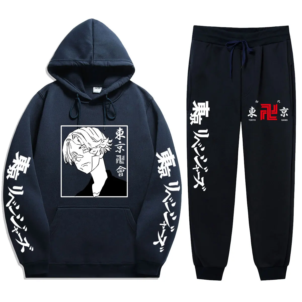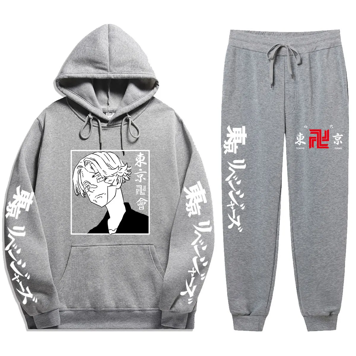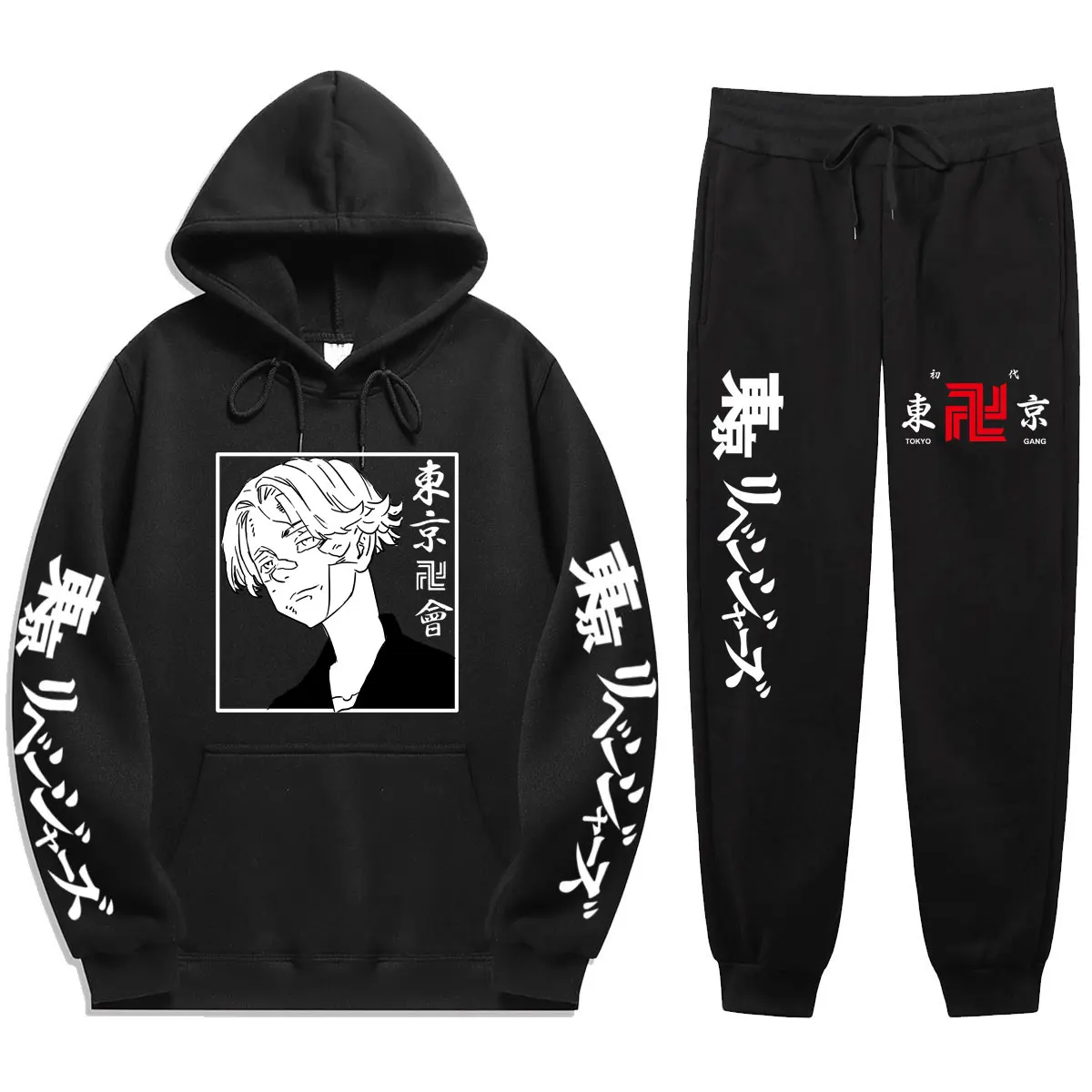 Новые модные комплекты из 2 предметов с аниме Токийский Мстители осень-зима мужские повседневные Мягкие Свободные толстовки + спортивные штаны Горячая Распродажа