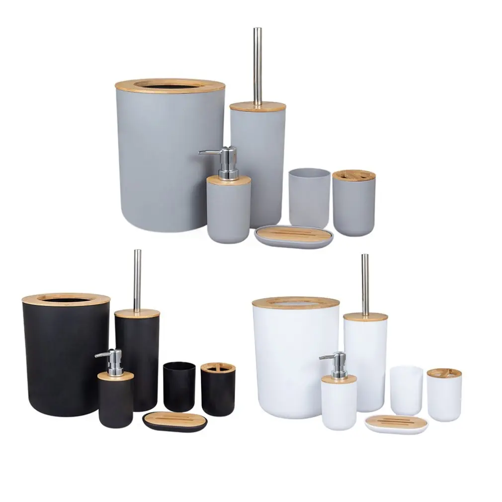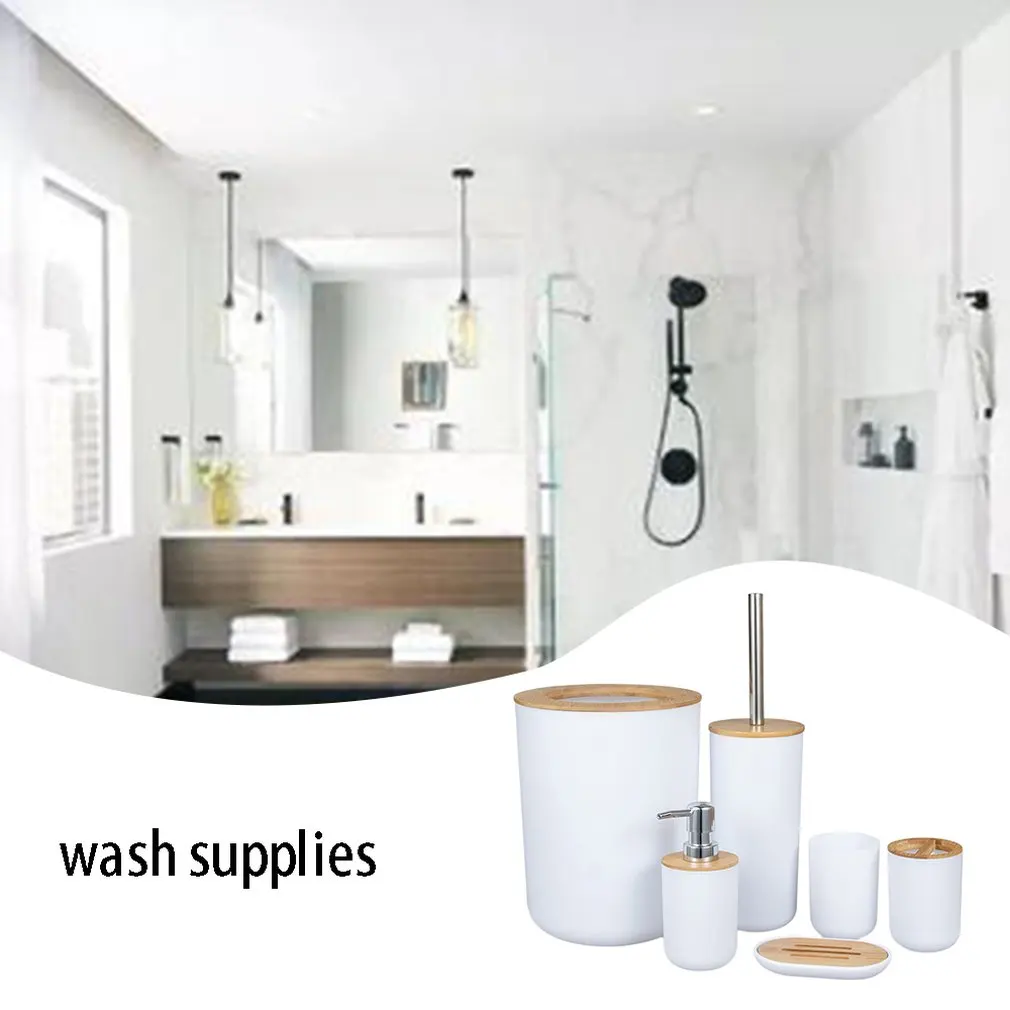Набор аксессуаров для ванной комнаты из бамбука, набор из 6 предметов, держатель для зубных щеток, дозатор мыла, ёршик для туалета, Набор принадлежностей для ванной комнаты