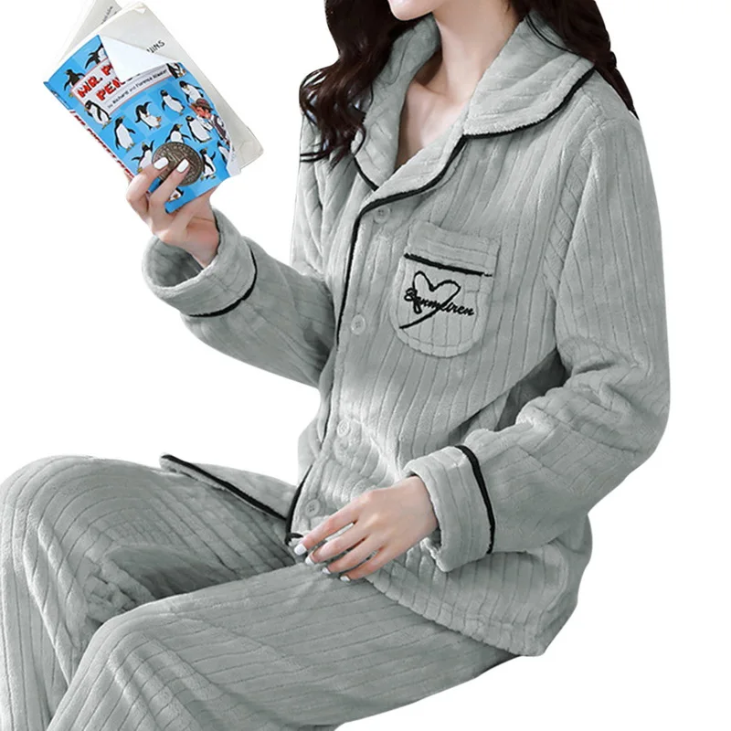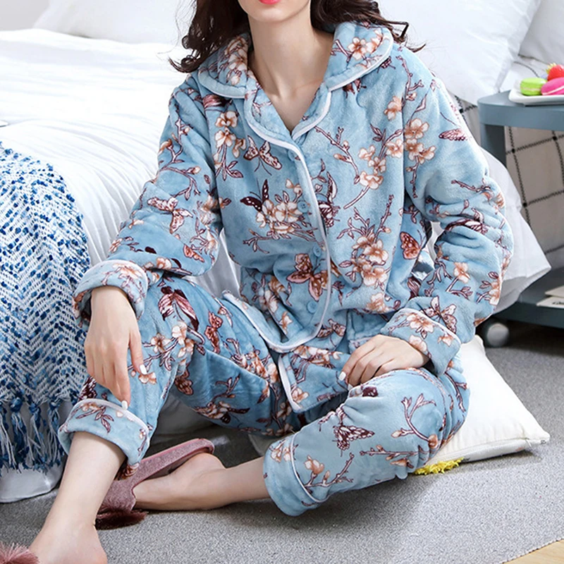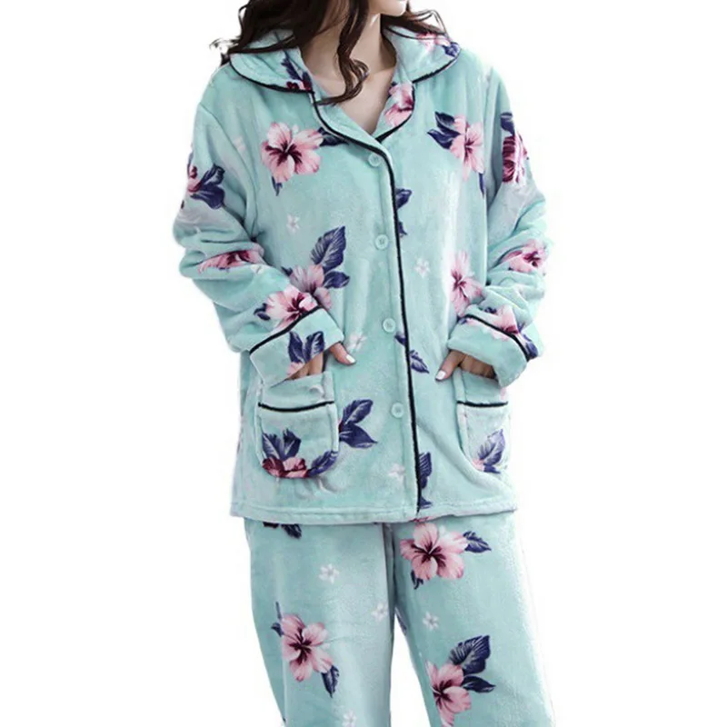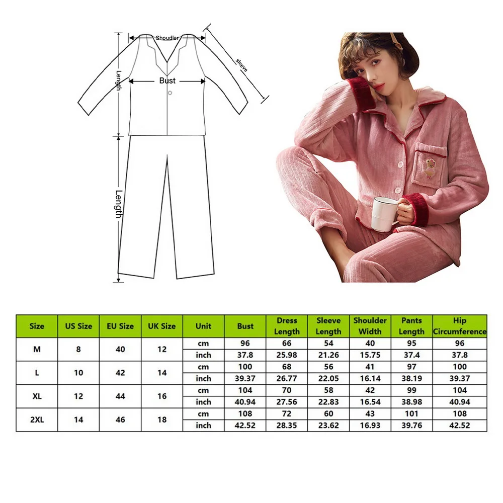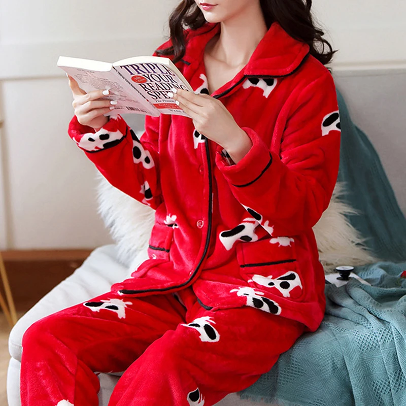 Зимние пижамные комплекты, женская одежда для сна, теплая Фланелевая пижама с длинным рукавом, Розовая домашняя одежда с милыми животными, плотный домашний костюм