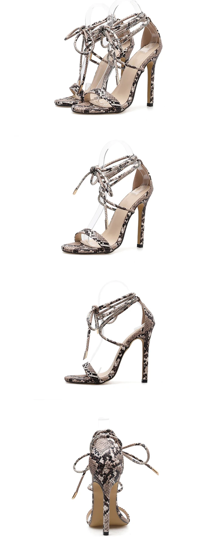 Aneikeh, Новинка лета 2022, сексуальные женские сандалии на высоком каблуке со змеиным принтом, туфли с открытым носком и перекрестными ремешками, модные вечерние туфли для женщин 35-42