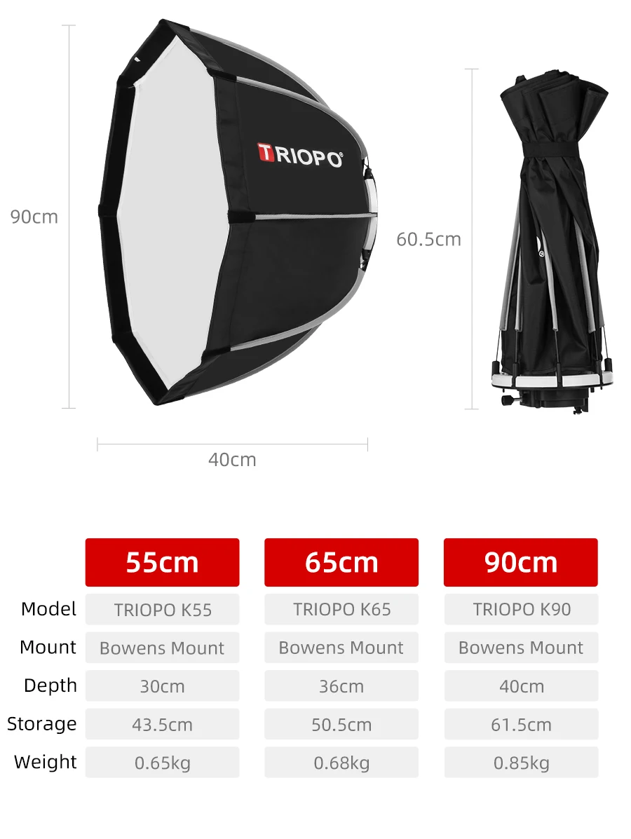 Портативный лайтбокс Triopo 55 см 65 см 90 см 120 см для вспышки Sp...