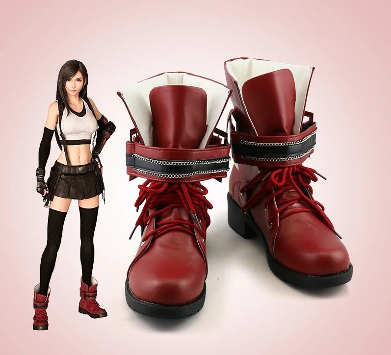 Сапоги для косплея Final Fantasy VII, красные сапоги из искусственной кожи для женщин