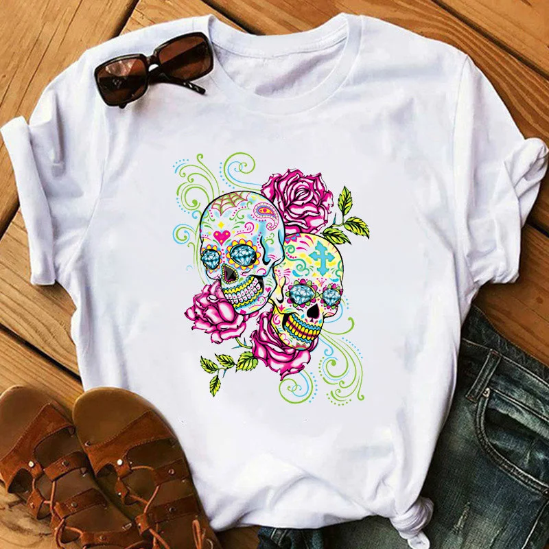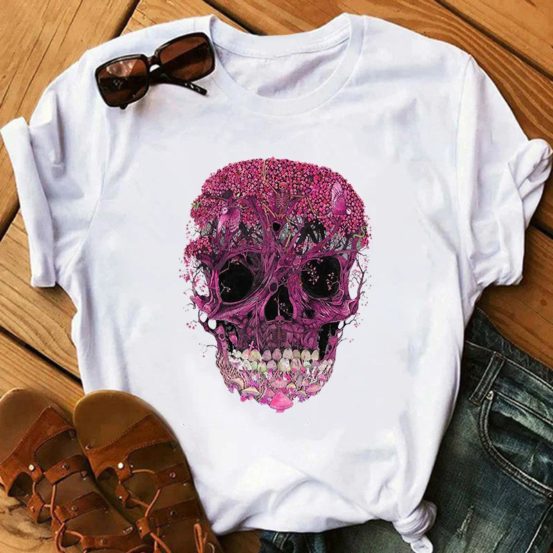 Футболка женская с принтом черепа, модная бандана в стиле Харадзюку, белый винтажный смешной Топ в стиле хип-хоппанк, одежда