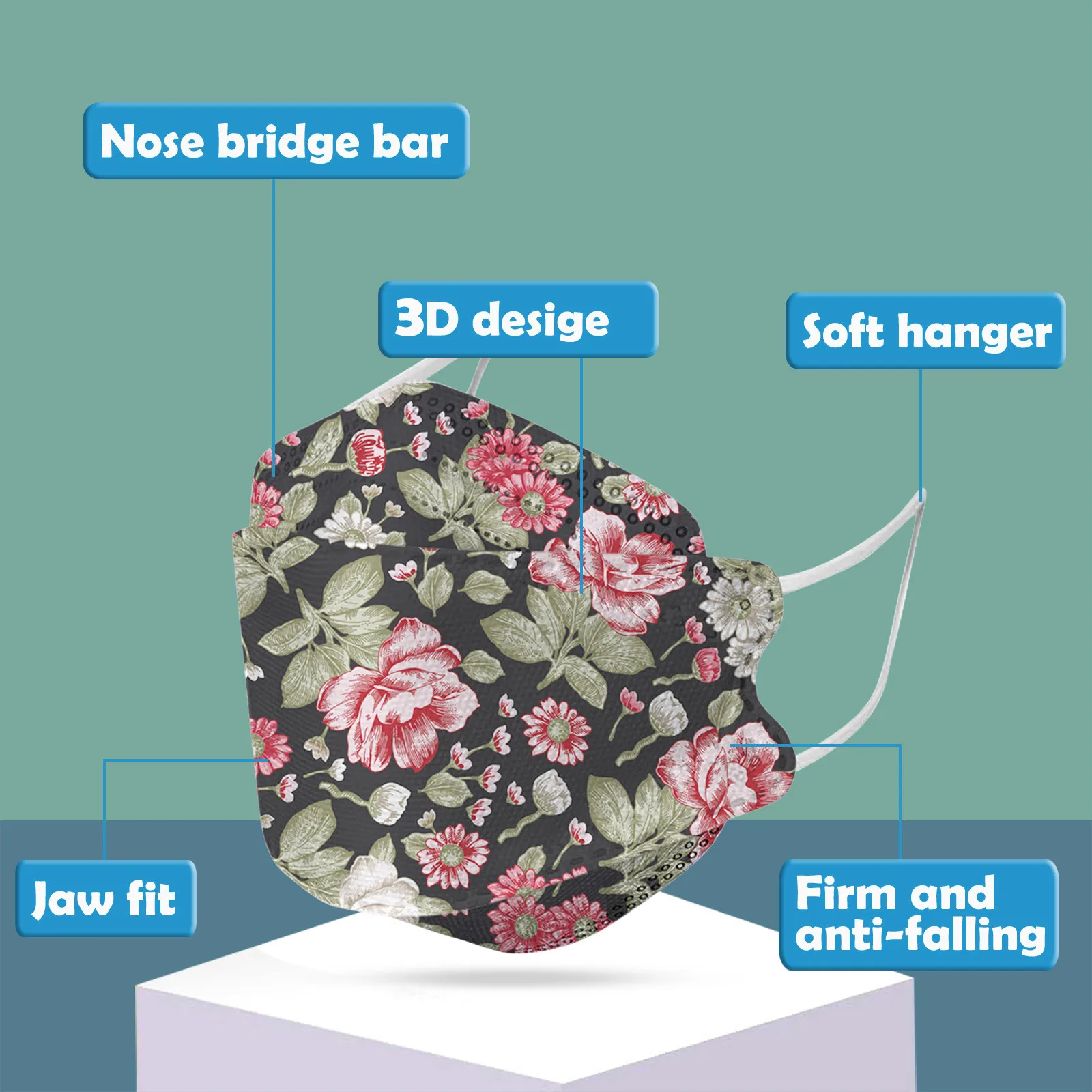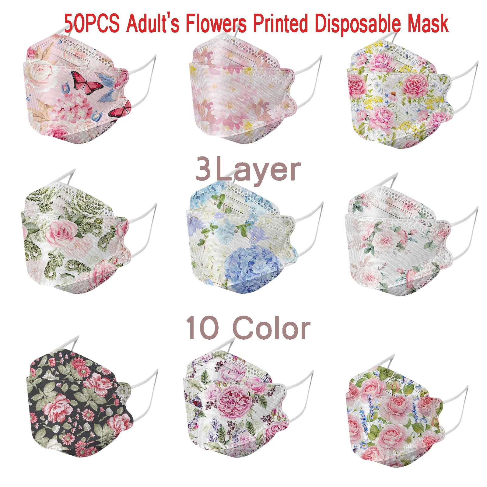 50 шт., маски для лица в форме рыбы, с цветочным принтом