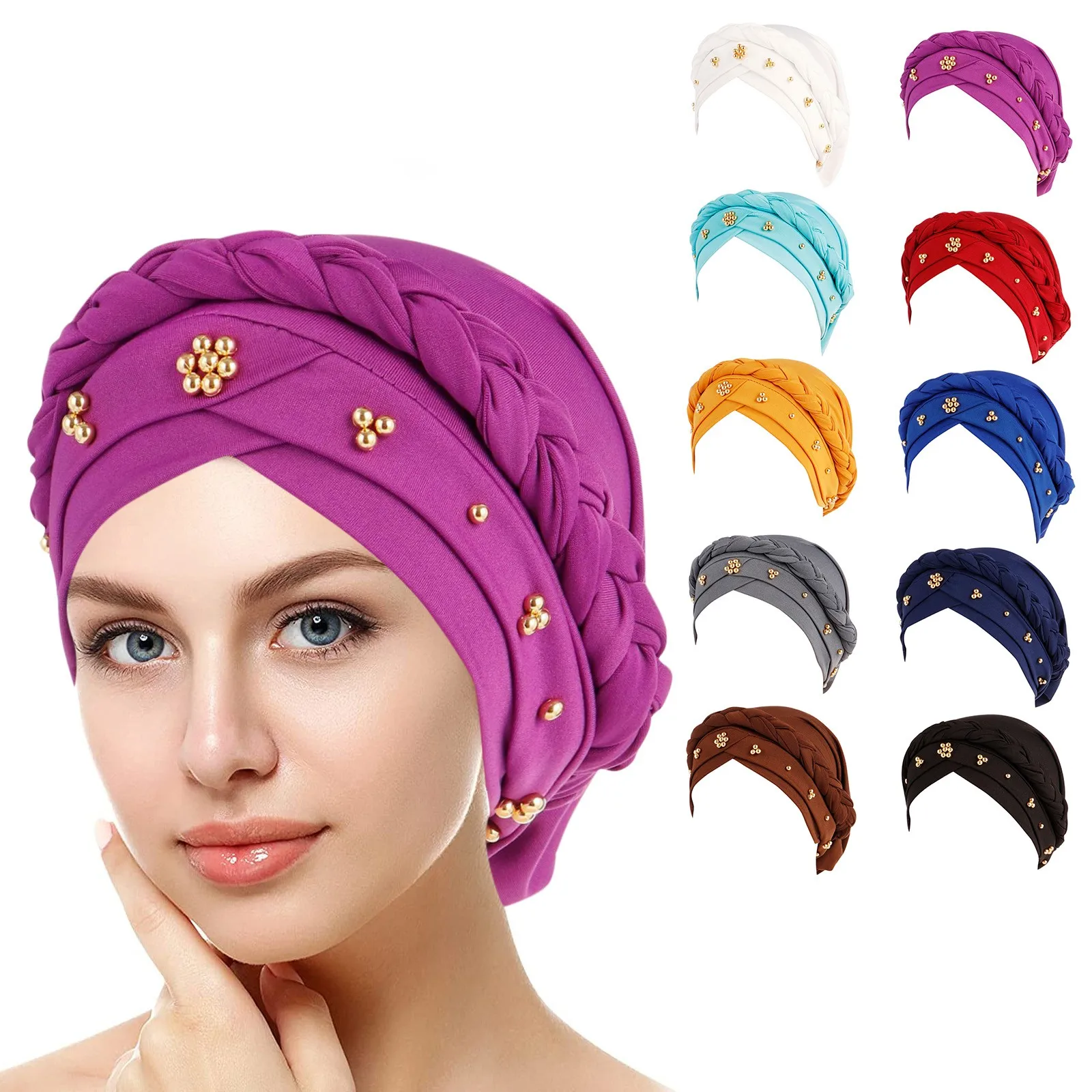 Женская шапка-тюрбан, головной платок из бисера, шапочка в виде скрученной косы, головной убор