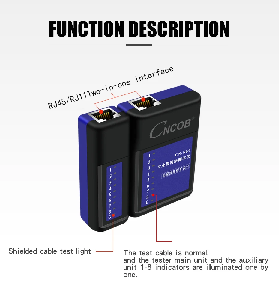 Кабельный тестер промышленного класса, Многофункциональный тестер интерфейса RJ45 RJ11 в одном, инструмент для ремонта кабеля Ethernet телефонной линии