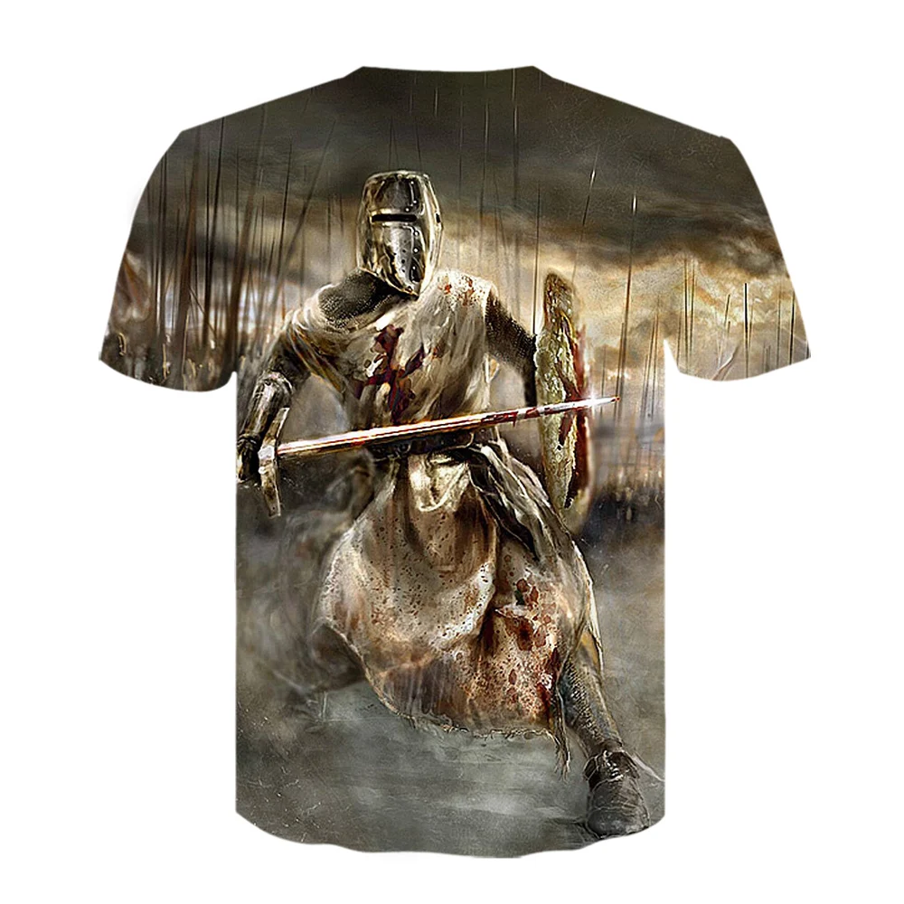 Футболка мужская с рисунком рыцарей, темпларов, воинов, летняя модн...