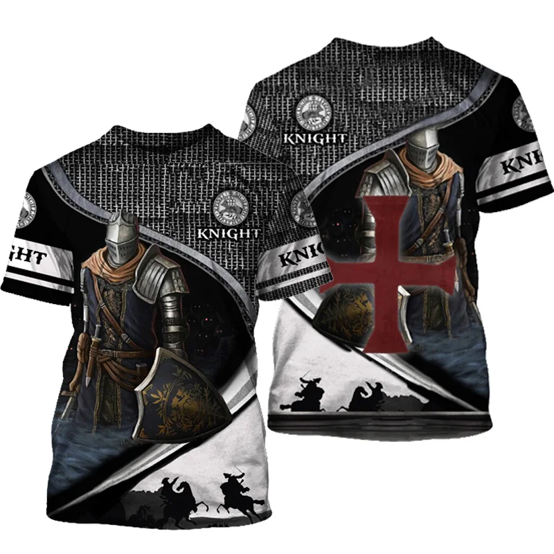 Футболка Рыцари Armor с 3D принтом, брендовая Повседневная Свободная модная черная рубашка с коротким рукавом, топы высокого качества, футболки рыцари-темплары