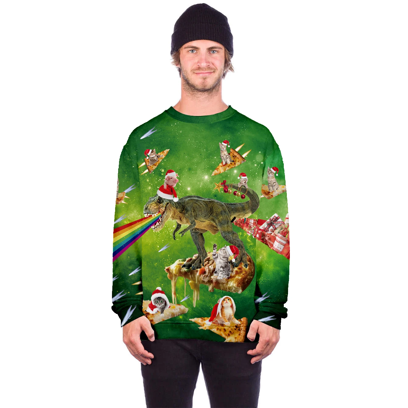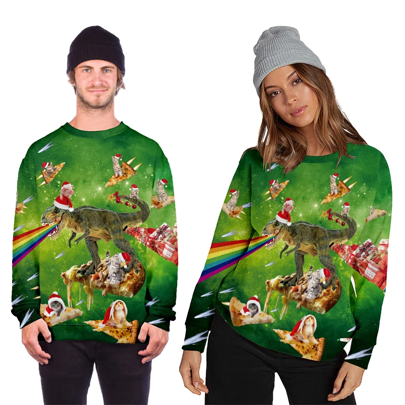 Свитер унисекс с забавным принтом в виде животных, рождественский д...