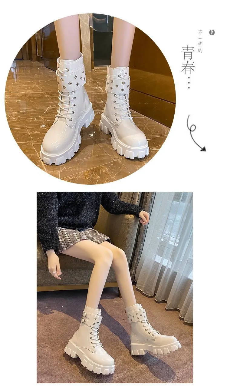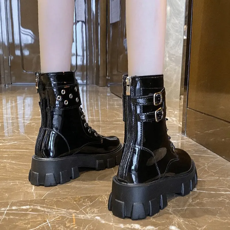 Женские ботинки Осень-зима новые модные ботинки Martin на толстой подошве с круглым носком Большие размеры корейские Повседневные Удобные ботинки женская обувь