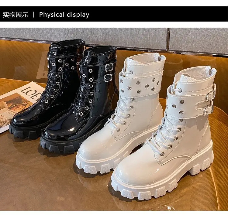 пришли ботинки, не поцарапанными ,хорошего качества, плохо, что внутри не было ничего для того ,чтобы форму держали, немного помялись, нужно самой подгонять шнурки и застёжки по ноге, очень длинные шнурки, нужно как то их заправлять под верхний ремешок, может отрезать, ну это кто как решит. А вообще красиво, чисто белый лак, мне в обтяжку по ноге, трудновато застёгивать замочек, который сзади, может разработается.